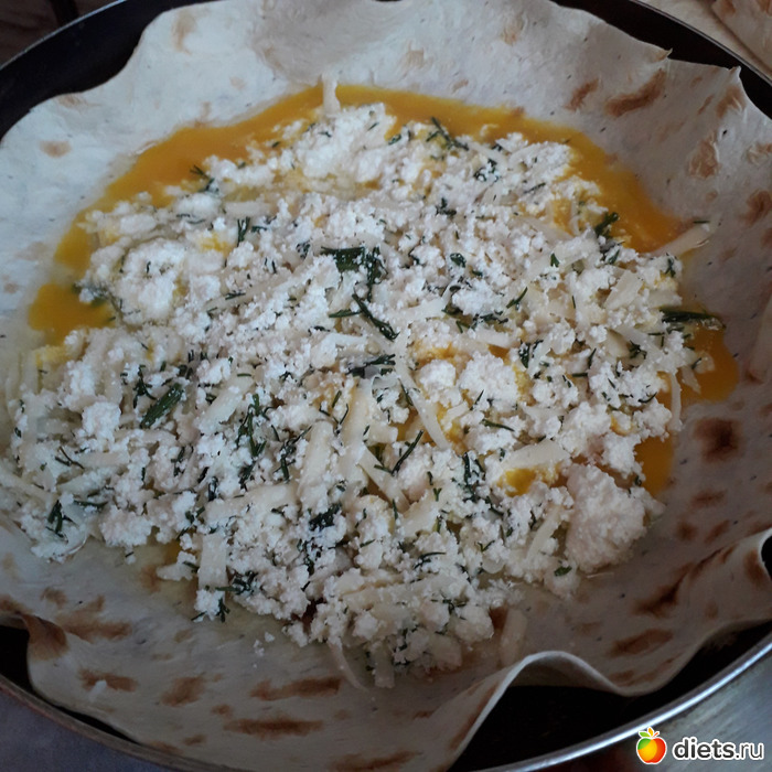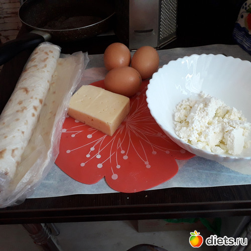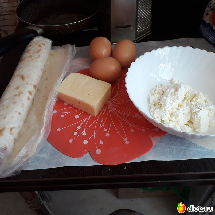 Лаваш, сыр, творог, яйца, укроп и масла немного для жарки