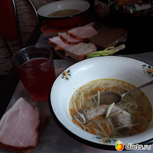 Суп-лапша, карбонад свиной-на бутерброде, компот