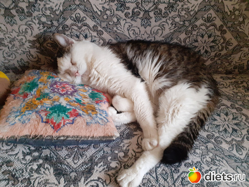 Кот родителей. Ему больше 17 лет. Спит на этой подушечке только. Очень худенький стал, хоть ест да спит целый день. Моисею привет от Барсичка-старичка