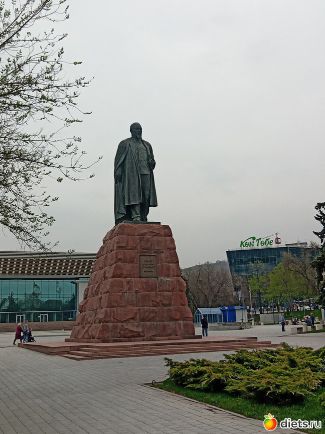 Памятник Абаю перед дворцом республики в начале одноименного проспекта.