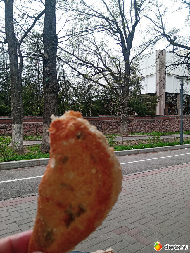 Тут Инжу как обычно проголодалась и были куплены чебуреки в чебуречной №1. Набор мини с джусаем и моцареллой и для Инжу с курицей и грибами.