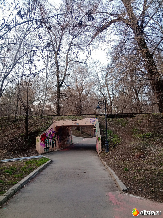 Беговая дорожка идет с набором и понижением высоты, тут симпатичный переход под детской железной дорогой.