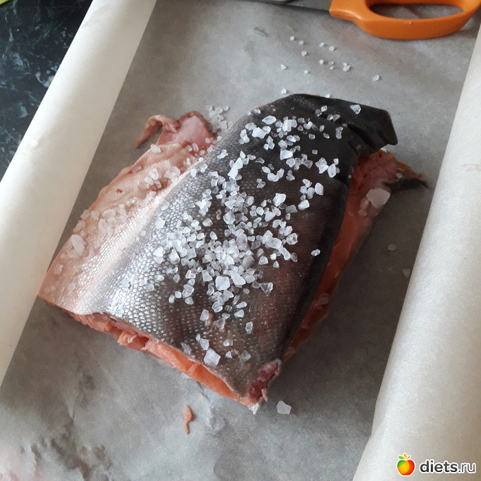 -Посолила горбушу в пергаменте, по-фински, крупной морской солью