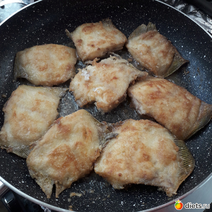 А камбала-то в приготовленном виде, вроде, и не такой мелкой кажется, как была при разморозке.