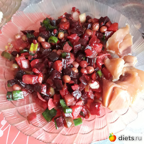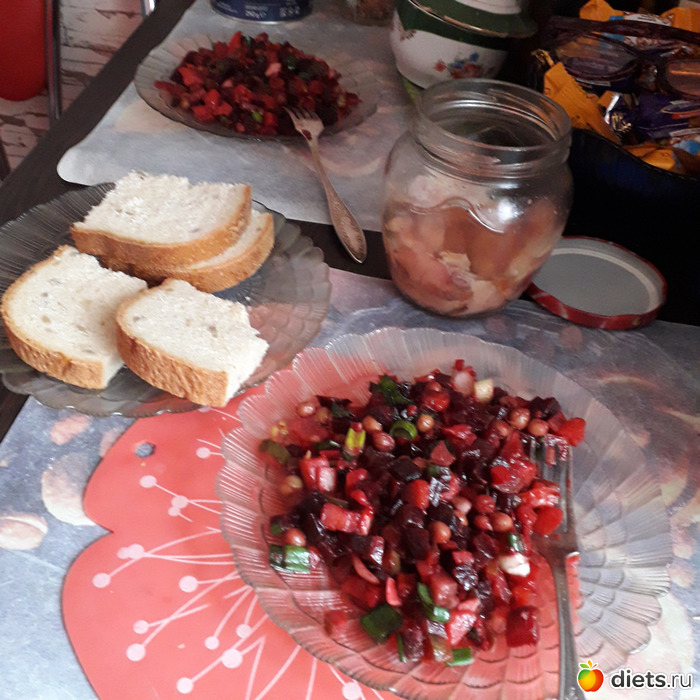 Винегрет с слабосоленой горбушей, суп рыбный по-фински(забыла сфотографировать), компот