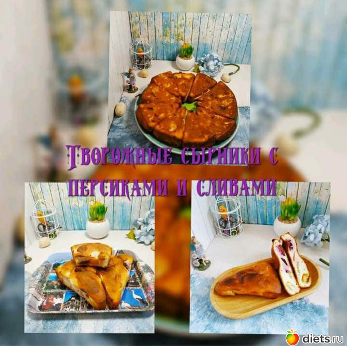 Взбить миксером творог, яйцо, молоко, сахарозаменитель, добавить разрыхлитель, рисовую муку, хорошо все взбить. Добавить сливы, персики порезанные на небольшие кусочки, хорошо все перемешать и разложить в силиконовые формочки.