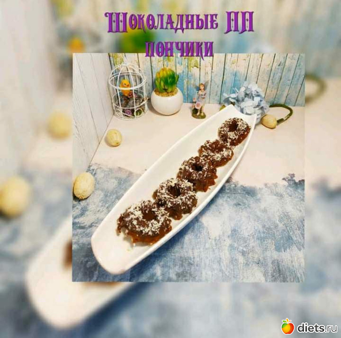 6 г горького шоколада ( это приблизительно 3 дольки) поломать на кусочки, положить в мисочку добавить 1 столовую ложку молока поставить на 30 секунд в микроволновку. Достать мисочку хорошо все перемешать до однородной массы. Остывшие пончики опускаем в глазурь сверху посыпать кокосовой стружкой.