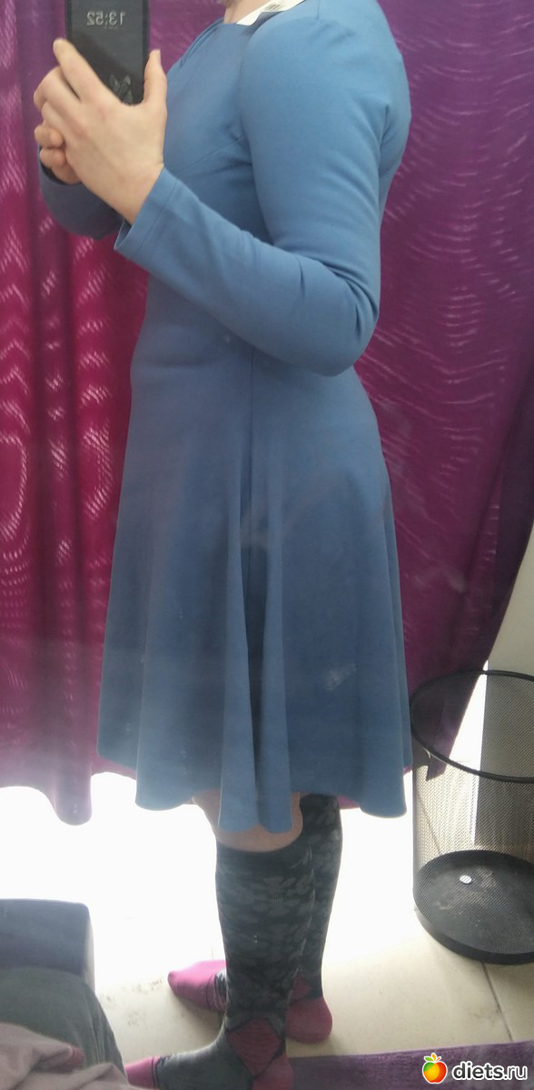 Первое платье. Его я отправила назад. Не мой цвет, не мой размер, не моя длина, вырез тоже не для меня. Вот как-то совсем не сложилось. Я заказывала таких два, разных цветов. Голубой и фуксия, второе даже мерить не стала.