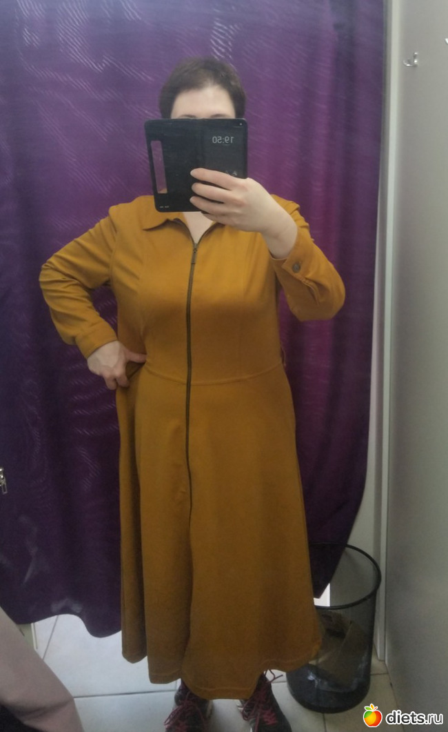 Фото жёлтого платья, которое оказалось вовсе не жёлтым, вовсе не платьем, и вовсе не 48-50 размера, а 52-54 минимум.