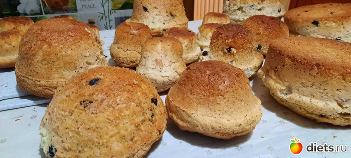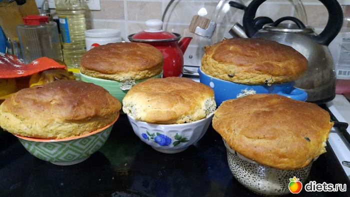 а ещё надо уже зарубить себе на носу, что печь только по ОДНОМУ противню отдельно, а я разу два пихаю, потому что разложила уже и тесто поднялось, выпрыгивает из формы. Значит, зарубить №2- закладывать в формы по мере выпекания предыдущей партии. Пеку-то в промышленных масштабах, всё время как-то маловато нам.