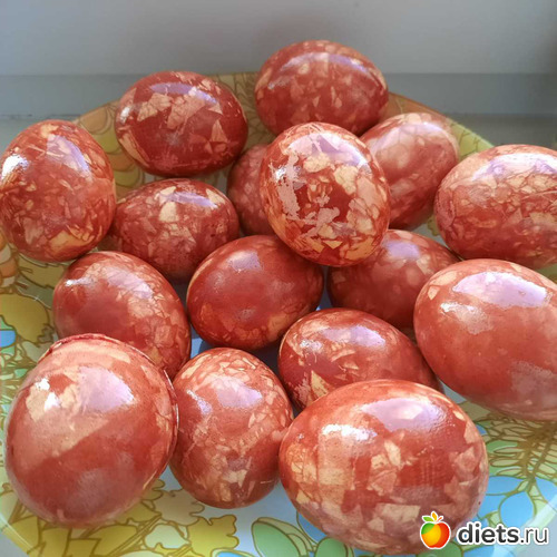 Покрасила яйца луковой шелухой. мраморные. красавчики и экологично. не было марли, я как-то бинтами умудрилась. сама в шоке.