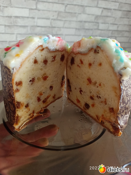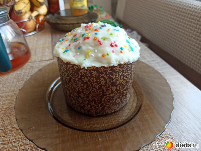 Кулич выходит не сухим, как классический. Глазурь на любителя. У меня в семье никто не любит классическую сахарную глазурь, поэтому моим очень понравилось. Муж вообще в восторге, классический кулич он не любит, сказал теперь всегда печь этот