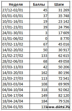 Обычно много хожу осенью, а зимой в силу погодных условий практически перестаю и весной начинаю снова. Для статистики вытащила свою двигательную активность по неделям с начала года. Это очень мало. Во втором полугодии 2021 в неделю выходило обычно 50-100 тысяч шагов, с начала года результаты не радуют. Тут еще две простуды, несколько переездов из города в город, непогода и переработки на работе, а она у меня сидячая.