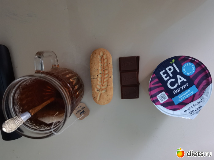 Я мужественно продержалась тот вечер, но эта половинка плитки (вторую съел муж, за что ему тоже спасибо) подпортила картину моего питания на следующий день.