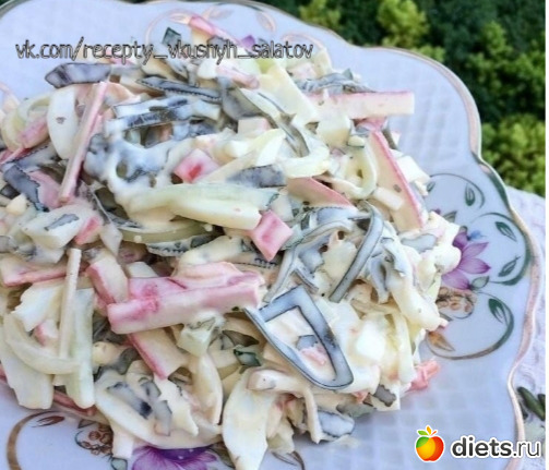 САЛАТ ИЗ МОРСКОЙ КАПУСТЫ, КРАБОВЫХ ПАЛОЧЕК И ЯИЦ