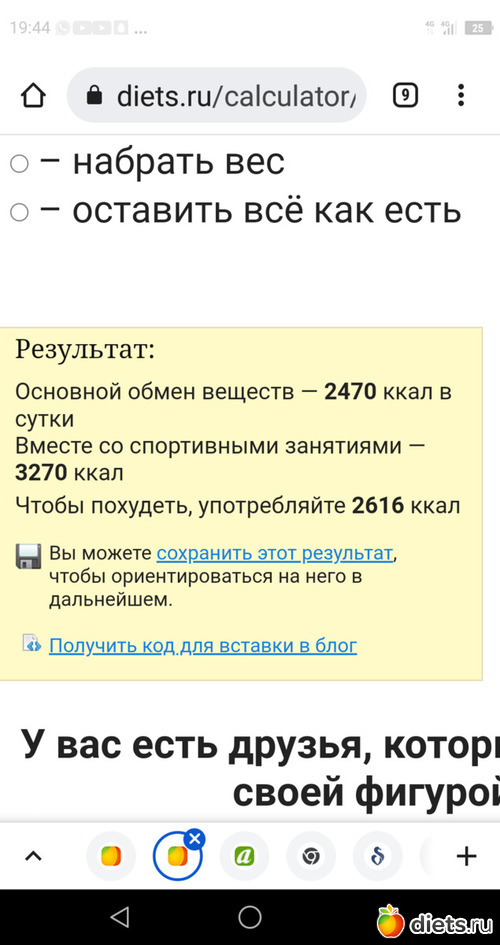 Вот эта балда - я которая - ну балда ведь! Вот работу ищу, с ног сбилась - не могу подобрать из-за и здоровья и уже возраст, и навыки потеряны ... и вот эта ежедневная борьба с весом и болячками - которая силы все отнимает, а вот то, что положено - от государства - и на что можно было бы лекарство вот дорогущее хотя бы купить - хирург прописал - вот забыла - вылетело из головы! Надо было подать заявление на доплату до прожиточного минимума аш в январе..., а я забыла - . пришла раньше в МФЦ - осенью - а меня отослали до января... забыла вот( ...Что-то там платят ведь - какие-то 2000 вроде, а откуда узнать, сколько прожиточный минимум и сколько надо - ведь никто из пенсионного фонда или соц.служб не напомнит.. Вот и расстроилась до стресса(.. И вот сегодня 2000 ккалорий.. и больше б съела( ... Но специально вот поставила этот вот скрин - шот.. Если уж мы здесь так паримся - калории считаем, тренировками себя истязаем ( я не говорю о том, когда занятия в радость), и нам вот так показывают подсчётами - сколько мы должны есть, чтобы худеть, так почему же не худеется-то?... Тогда формулы неправильные - убрать их надо - если не худеется ... Но дело-то ведь не в формулах .... Кто давно в теме, понимает.... ( Уж простите, что поплачусь здесь сегодня, ладно? Приду в порядок - обещаю... может уже завтра. Научилась справляться с дипрессией за один день.. Завтра в строй.