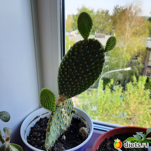 Мой Лопушок молодец, так активно начал растить свои ушки и ещё какие-то пумпочки, никогда не видела, чтобы у опунции посредине ухи росли