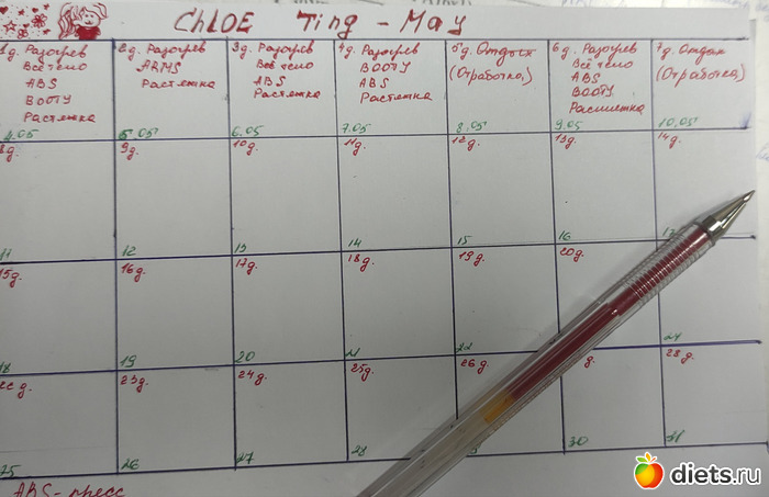 С тренировками вопрос решился для, сам собой : раз два дня не тренируюсь - убираю два дня отдыха ( сделала для себя такую табличку с трениррвками, как по мне очень удобненько)
