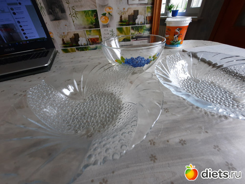тарельки стеклянные с узором, муж обозвал их дишманскими, но... они да, мало стоят))) но симпатишные, уже ела из одной суп))) пусть будут)))