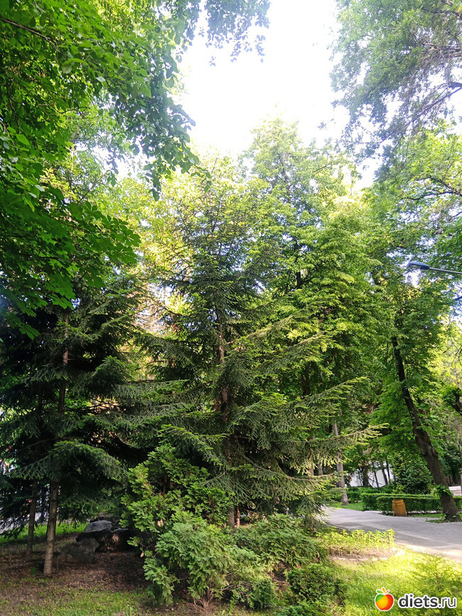 Деревья все в листьях, а молодая зелень елок отличается только наощупь.