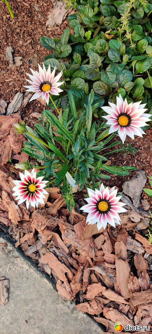 Мелкие белые да, это маргаритки а крупная как ромашка это гацания или ещё называют газания цветёт с ранней весны до первых заморозков однолетник.