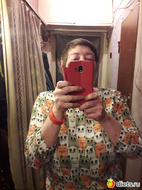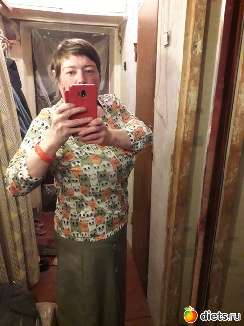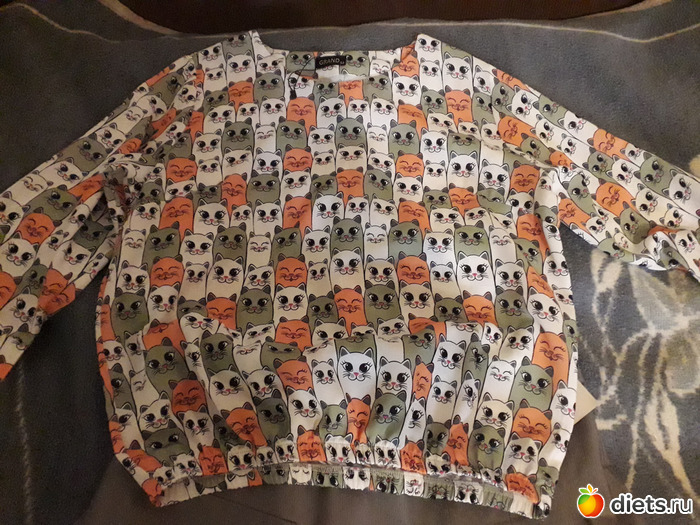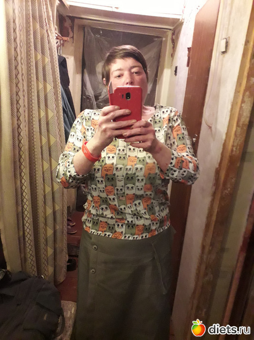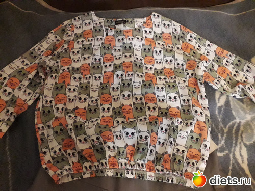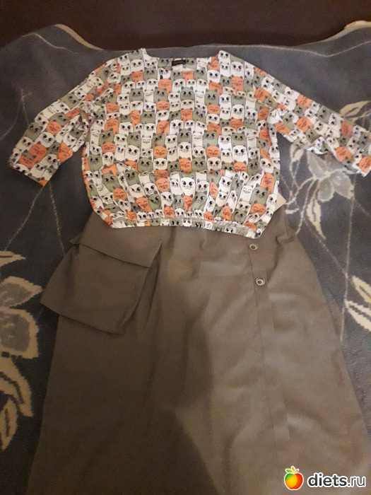 Кофточка с котиками - супер! С юбкой очень сочетается. И тебе очень идёт!
