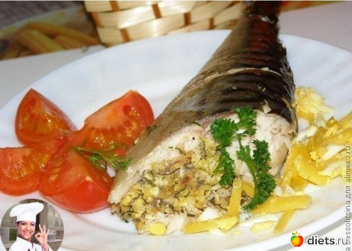Поставим вариться яйцо вкрутую, включим духовку и займемся рыбой. Помоем тушку, очистим ее от кишок и снова помоем и высушим.