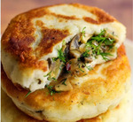 Добавьте около половины столовой ложки грибной начинки, затем сверху закройте все картофельной смесью и сформируйте круглые картофельные лепешки.