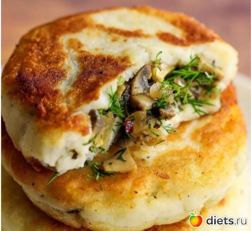 Смешайте муку с картофельным пюре. Возьмите пару столовых ложек теста и сформируйте их в плоские котлеты.