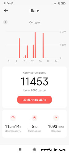 есть встроенный шагомер и находила я сегодня больше 11 000 шагов.
