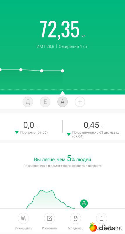 Объемы измерять не хочу, для меня важнее сейчас увидеть минус на весах, чем минус на сантиметровой ленте. Мотивации будет больше.