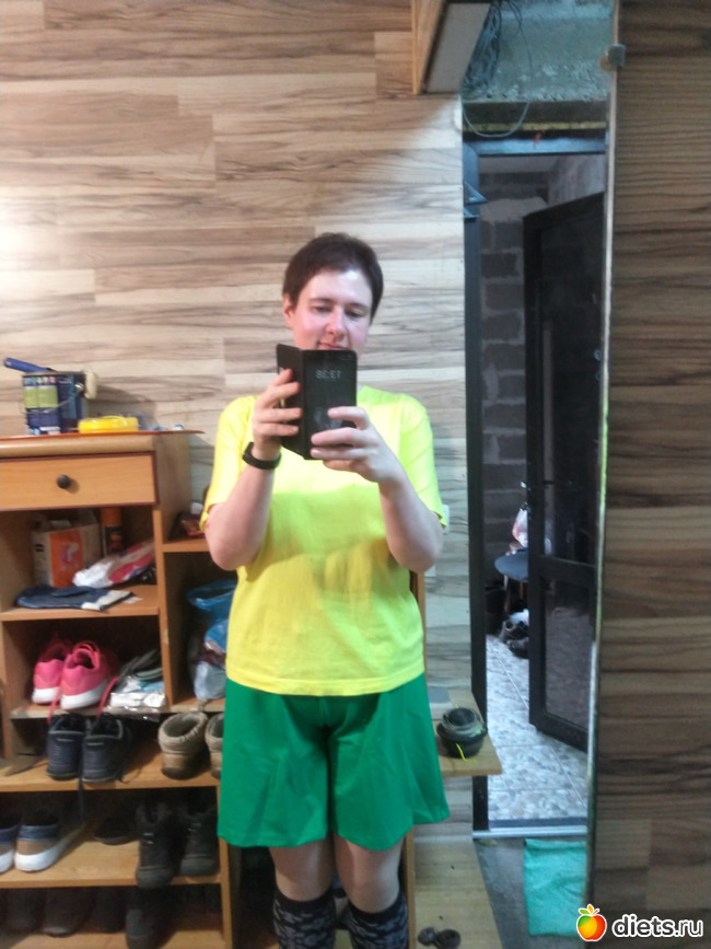 Ещё были трикотажные шортики, для собакопрогулок и огорода. В сочетании с жёлтой футболкой я похожа в них на болельщицу бразильской сборной
