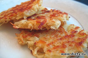 Завтрак: картофельные оладьи со сметаной и салат из огурцов. Минеральная вода.