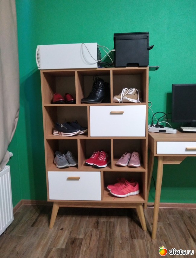 Он же на фоне моего комода с кроссовками. Я всё никак не могла придумать, чем заполнить пустые полки в комоде. Покупка 5 пар кроссовок решила проблему