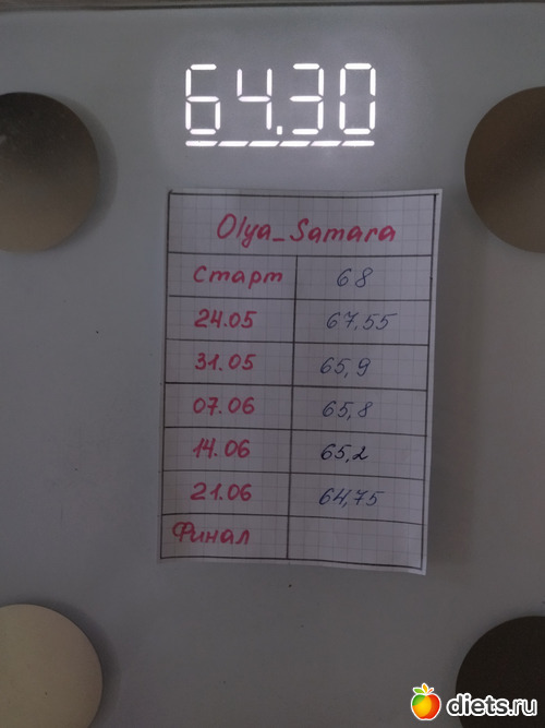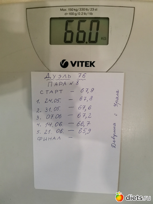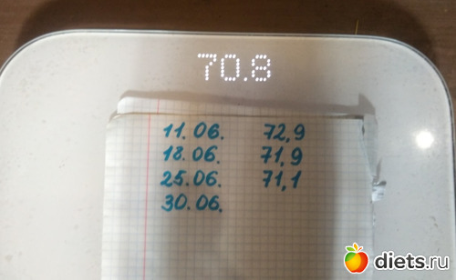 Минус 300 гр за 5 дней. Цель 69,9 не достигнута, но я хотя бы к ней приблизилась.
