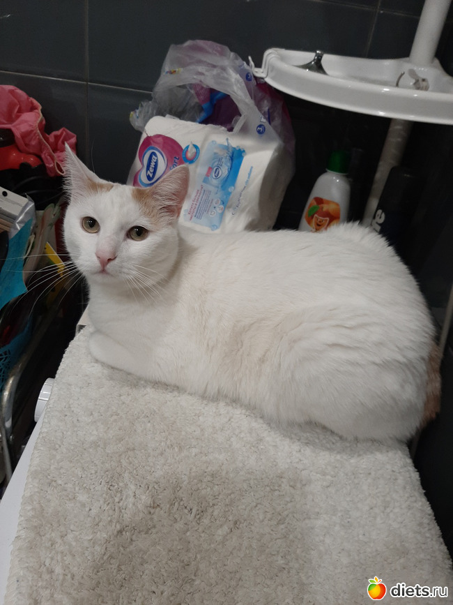 Это Филюшастый. Хоть сейчас у нас нет горячей воды и кастрюлькина помывка, в ванную меня всё равно сопровождает