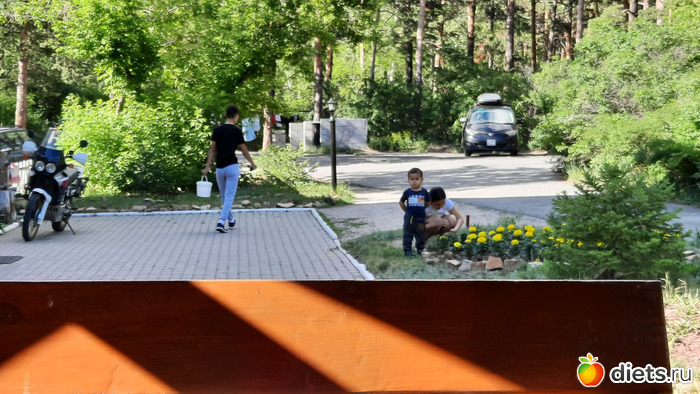 по дороге болтали с водителем. Они с женой - администратором из Чу, приехали на лето помогать дядьке-хозяину гостиницы. Сами учителя. Он-физрук, она учитель. я ему рассказывала про его сыночка, который так дрался с большим мальчиком за свою машинку! вот за эту)))