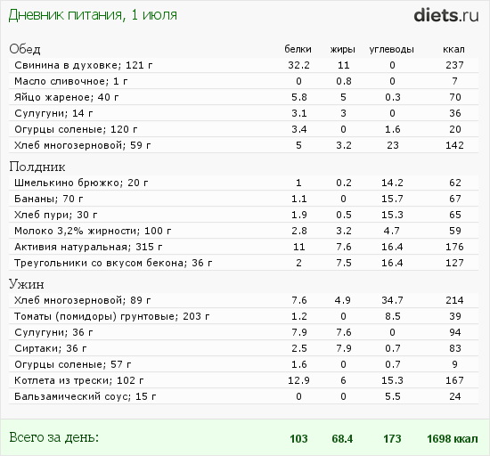 Мой рацион за вчера ниже