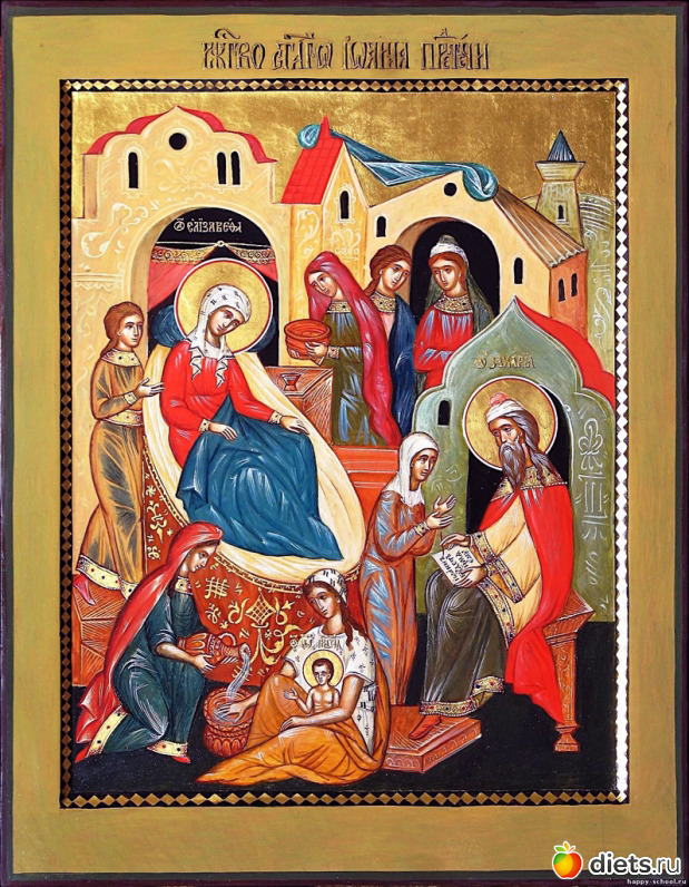 Настало время, и святая Елисавета родила сына, все родственники и друзья радовались вместе с ней. На восьмой день по закону Моисееву совершилось его обрезание. Мать назвала его Иоанном.