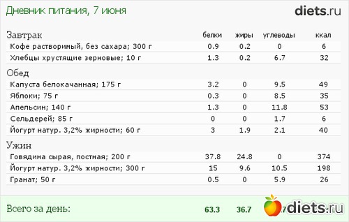 На ужин сырую говядину 200г., чистую баз жирка замочила на 1-2 часа в 50 мл. гранатового сока(натуральный без сахара, еле нашла 30 р. за 200 мл.), в списках его нет, а на упаковке энергетическая ценность указана такая же как здесь для граната.