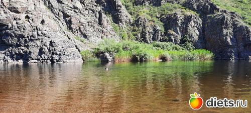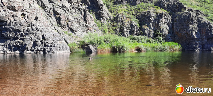 там была скала с выступом, муж на ней счастливо сидел и наблюдал, как я мудохаюсь с дитём. но потом всё-таки сменил меня на посту, а некоторое время и вместе покупались