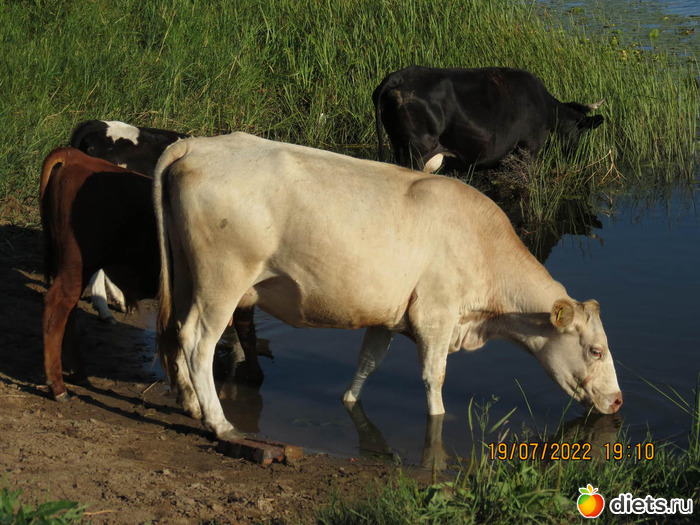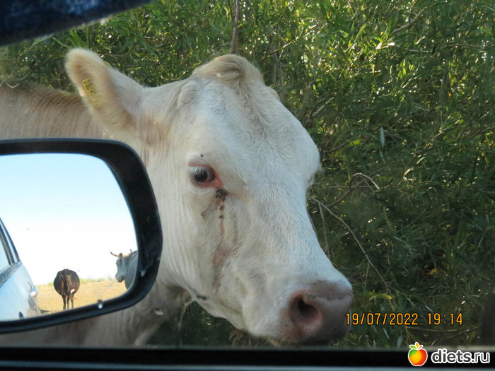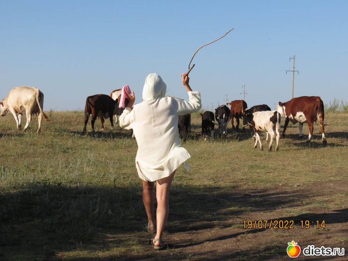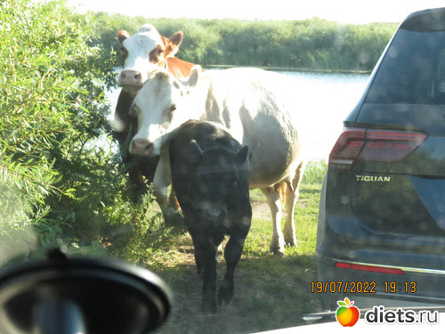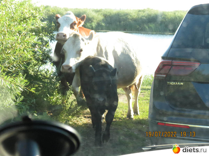 Наша подруга Вано-убеждённый гринписовец и заступилась за коров, типа, пусть пройдут, попьют и дальше пойдут. Я - против, но я