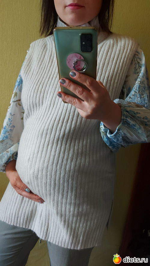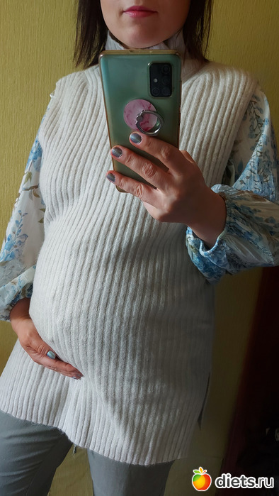 14. Вязаное платье/жилет H&M для б. На последние месяцы...29,99/16,20 евро На фото без обуви. Не знаю, в какую обувь влезу в тот период
