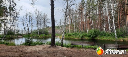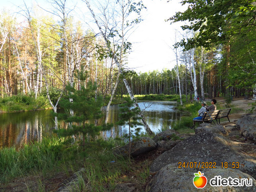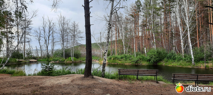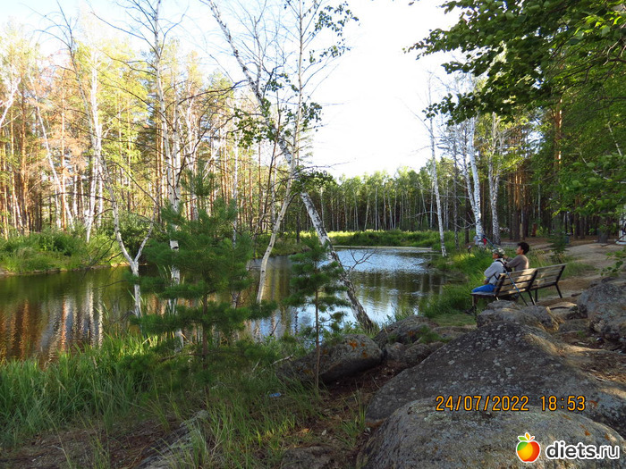 нашли пруд-тихую заводь, с лавочкам на берегу.