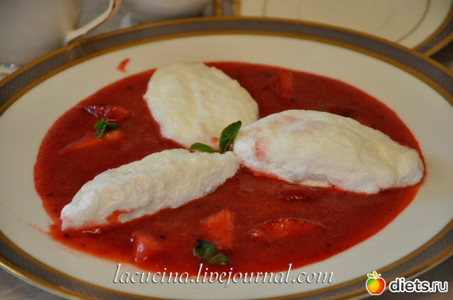 То, что я делала, называлось зефирными облаками в малиновом соусе, что-то вроде того, и выглядело оно совсем не так, как на картинке, но рецепт такойже))