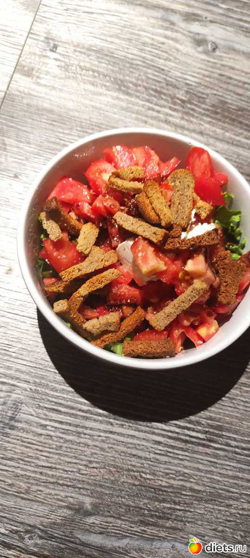 Ужин: овощной салат с брынзой и сухариками (больше ничего не ела, так как ужина в пол 11)