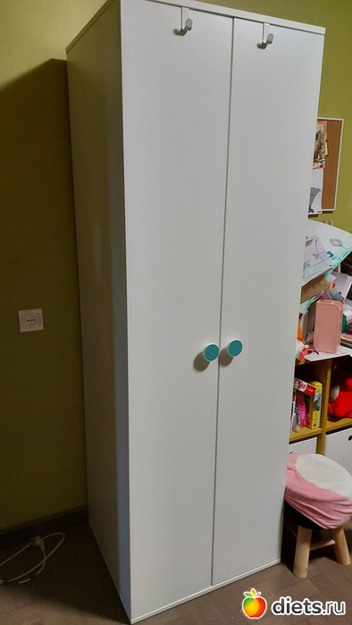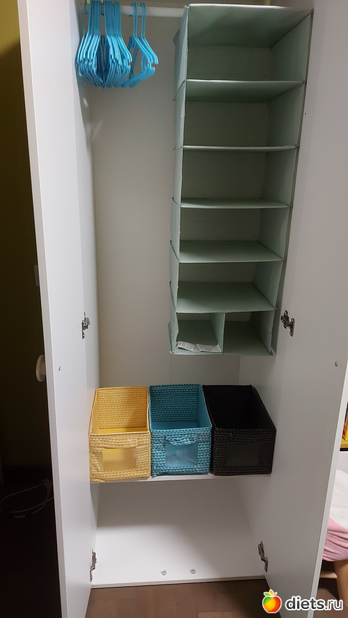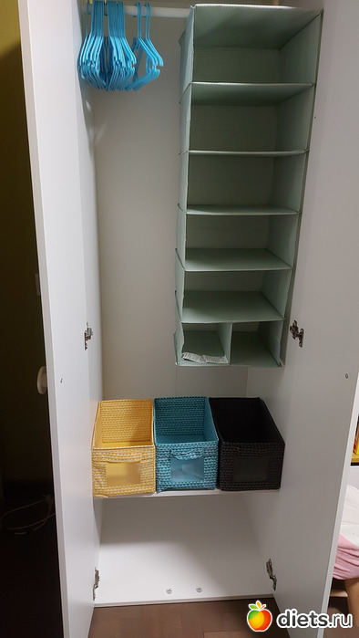 Шкаф из Икеи для дочки и органайзеры к нему. Дочкин комод решили отдать будущему малышу. Теперь уже жалею, что дочке купили шкаф, надо было просто взять третий комод. Неудобно шкаф. Она сама не будет развешивать по вешалочкам, а я задолбаюсь это за нее делать