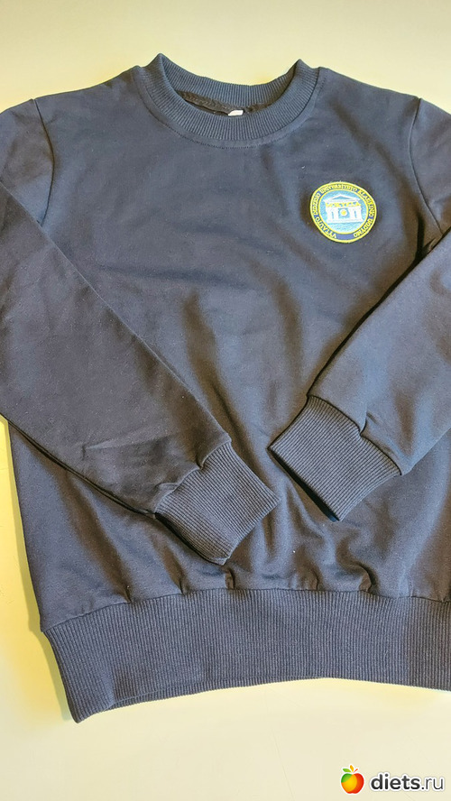 У сына еще проще, вся униформа - это только свитшот, он такой же, как у дочки, темно-синий, только эмблема другая. Сочетать его можно с чем угодно: с любыми брюками и джинсами, под низ пододевать, что хочется