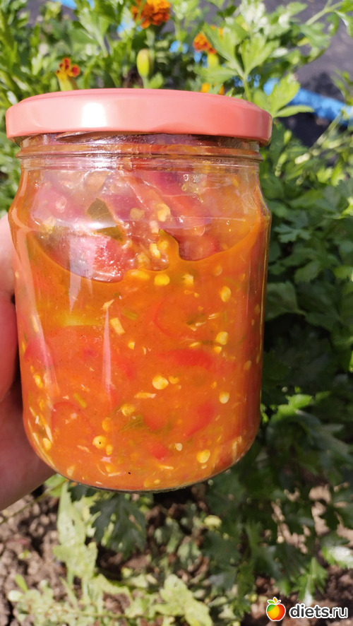 Помидоры прокручиваешь и кипятить минут 15,затем добавляет перец нарезанный кружочками и ещё минут 10 ,затем чеснок и зелень и соль и ещё минут 10. Потом в конце льёшь уксус и разливаешь по стерилизованым банкам и закручиваешь. Переварачиваешь и до полного остывания. Оставь немного на пробу. Если любите острое это просто бомба. Да и перец желательно взять разный по цвету красивее будет. Приятного аппетита