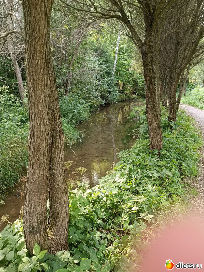 Из лесопарка выходим к бережку Серебрянки. Она вовсе не выглядит рекой в этом месте. Скорее малюсеньким ручейком. Но прозрачным, очень весёлым. Тут я посидела в тенёчке, понаблюдала купание собаки, гулявшей с очень вежливой хозяйкой. И дальше пошла по маршруту: вдоль Серебрянки в обход поселка "Заветы Ильича". Для местных жителей эта дорожка вдоль речки - практически набережная-променад. Гуляет масса народа. Что приятно, везде чисто, ухожено. За небольшой запрудой поднялась на пригорок и... впереди местная зона отдыха: довольно широкий по сравнению с речушкой пруд. Травянистый пляжик с качелями и бревнышками-лавочками, местами для барбекю и даже настилами для отдыха. Вот только сам пруд слегка подзаросший, много уток. Купаться я б не рискнула. Но по мелководью бегают дети и гуляют взрослые, мочат ножки. В целом место приятное. Дальше и дальше по берегу вдоль пруда, еще одна небольшая зона-перелесок, и я вышла к концу сегодняшнего маршрута - на Степаньковское шоссе. Пара километров до станции с замечательным названием Правда, и я очень удачно уехала обратно в Пушкино, к своей машинке.